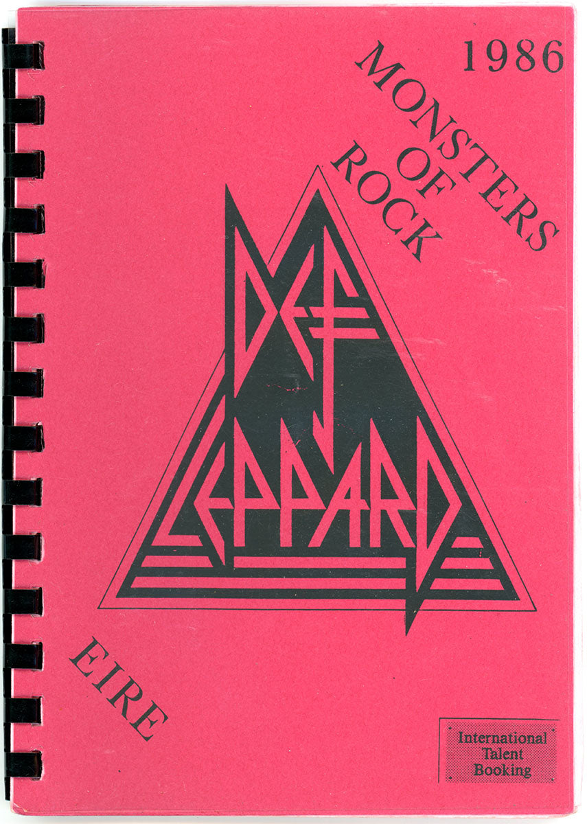 Amazing. Steve Clark's personal Hysteria Tour Itinerary Book for the kick-off dates of an epic, world-hopping, year-long adventure, beginning with that very first warm up show in Dublin S.F.X Hall, 27 August,1987. This spiral-bound booklet contains details for all of the Ireland/England leg of the tour, including dates, venues, sound check and performance times, travel routes, hotels, and days off. It also offers a little gem of advice, as surely the team was nervous, not knowing how the tour would be received. "Don't worry over what other people are thinking about you, they are too busy worrying about what you are thinking about them!" Words to live by. Courtesy of the Lorelei Shellist Private Collection.