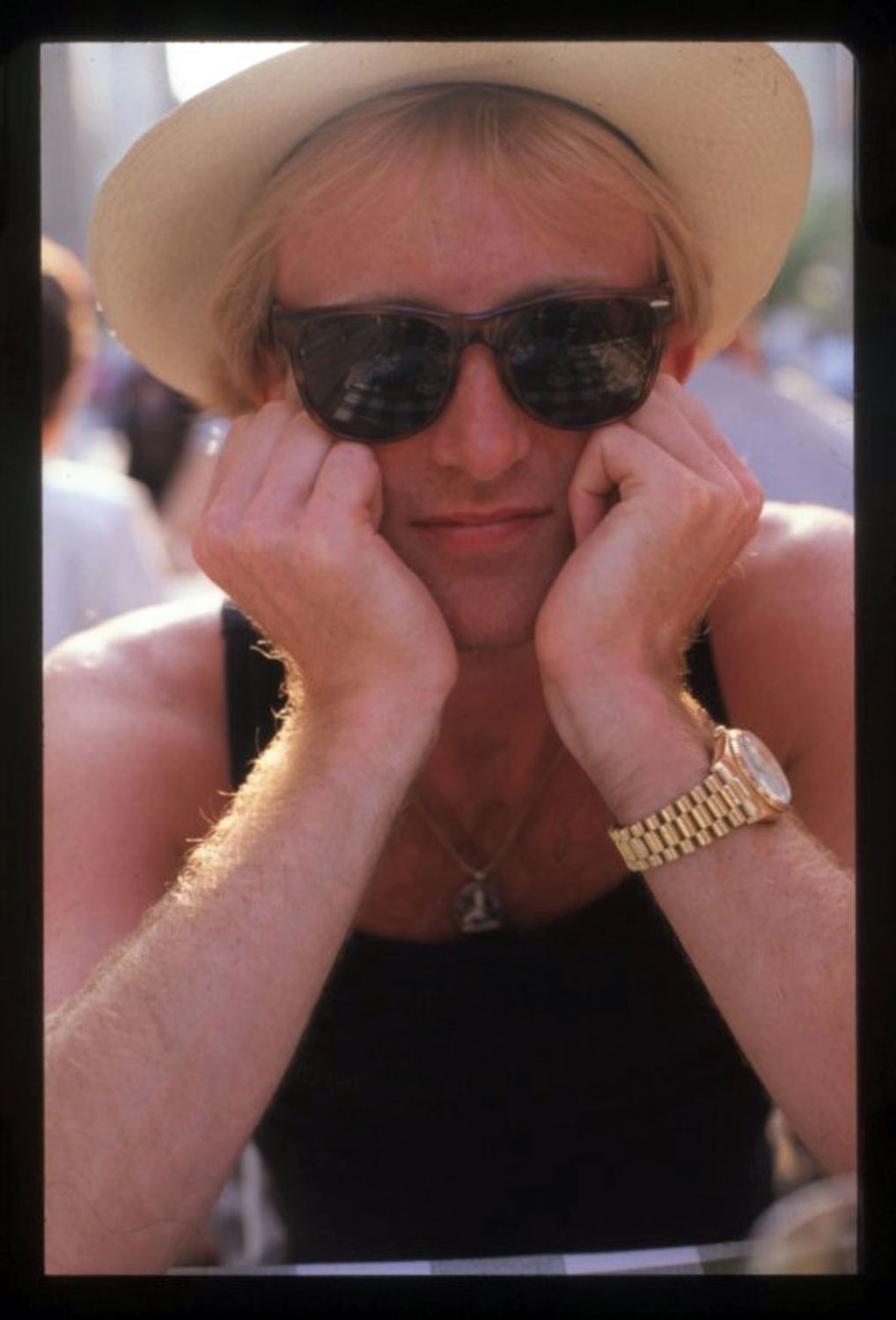Phil sits at an outside table in Germany, circa 1987. Photo: Uschi Brem-Freund. From the Collection of Def Leppard.