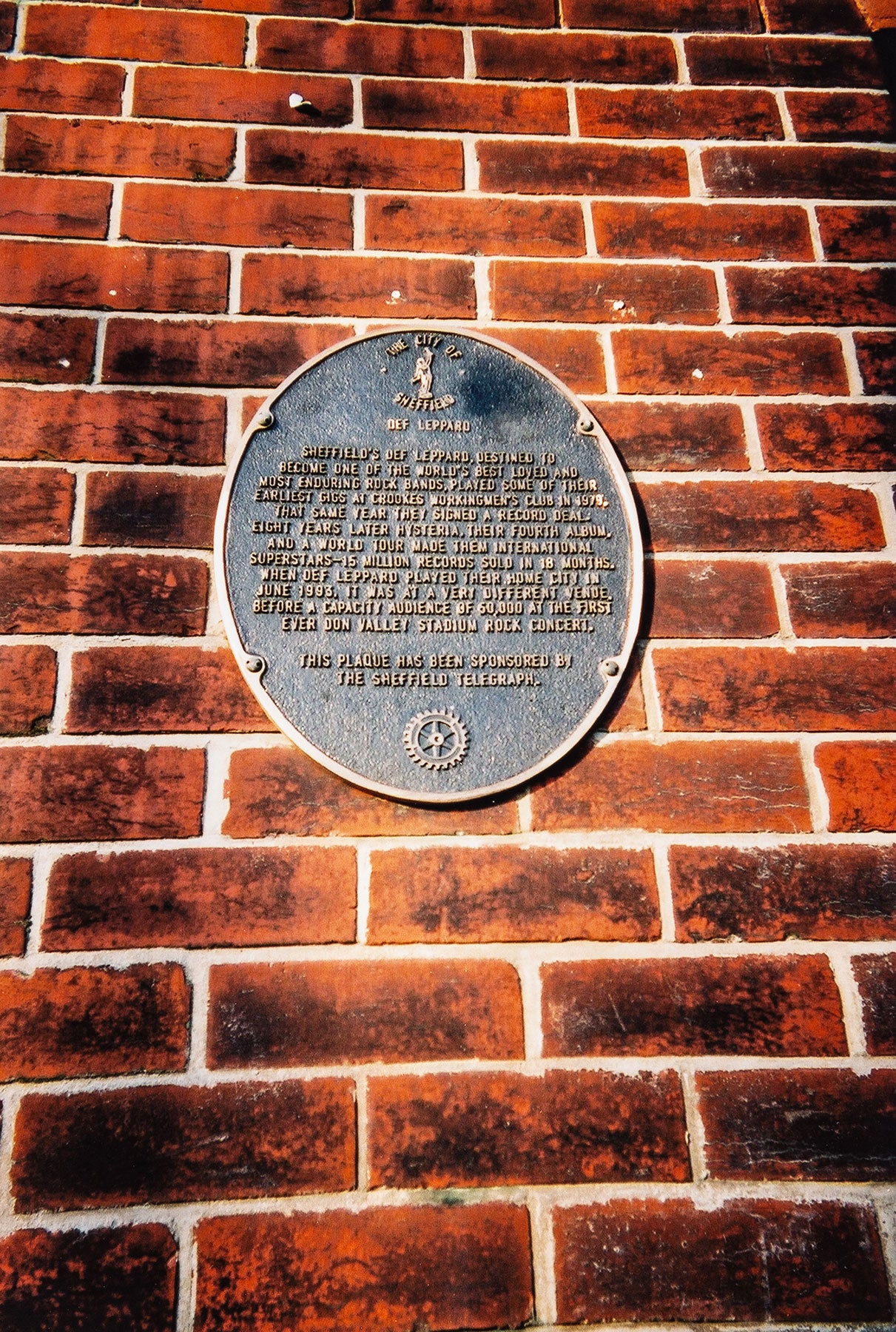 Founded in 1926, the Crookes Workingmen's Club (now the Crookes Social Club) on Mulehouse Road hosted Def Leppard for some of the band's first shows. Sav remembers, "We played here back in '79. I think it was like the seventh or eighth gig we ever did...It was actually quite a big gig for us because me and Joe, literally stone's throw away, lived here and grew up here...It holds a lot of fond memories for us. It was one of the stepping stones for us to get to the next level."
