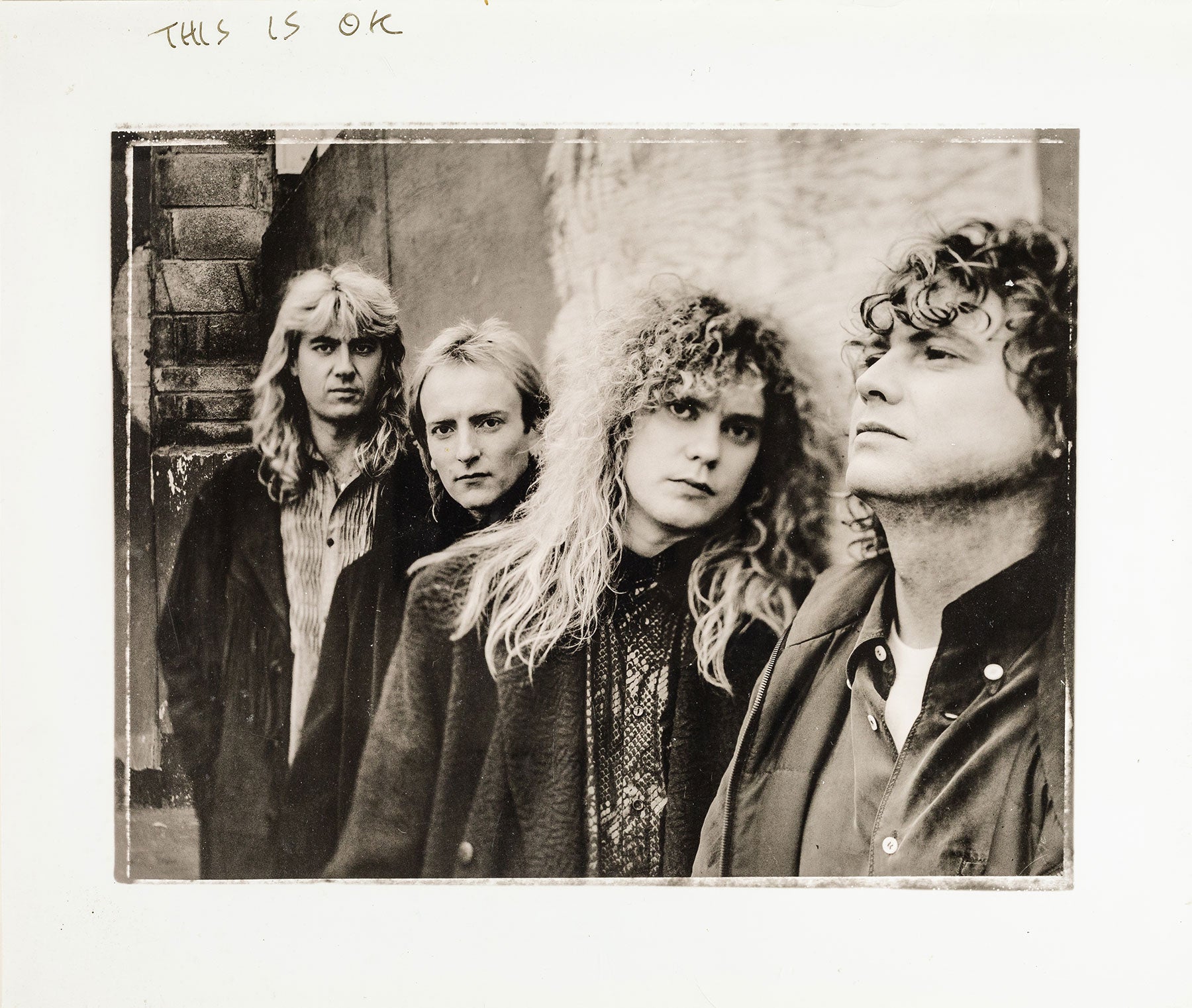 Band portrait with Joe, Phil, Sav, and Rick used in the Adrenalize CD booklet, March 1992. Photo: Pamela Springsteen. From the Collection of Def Leppard.