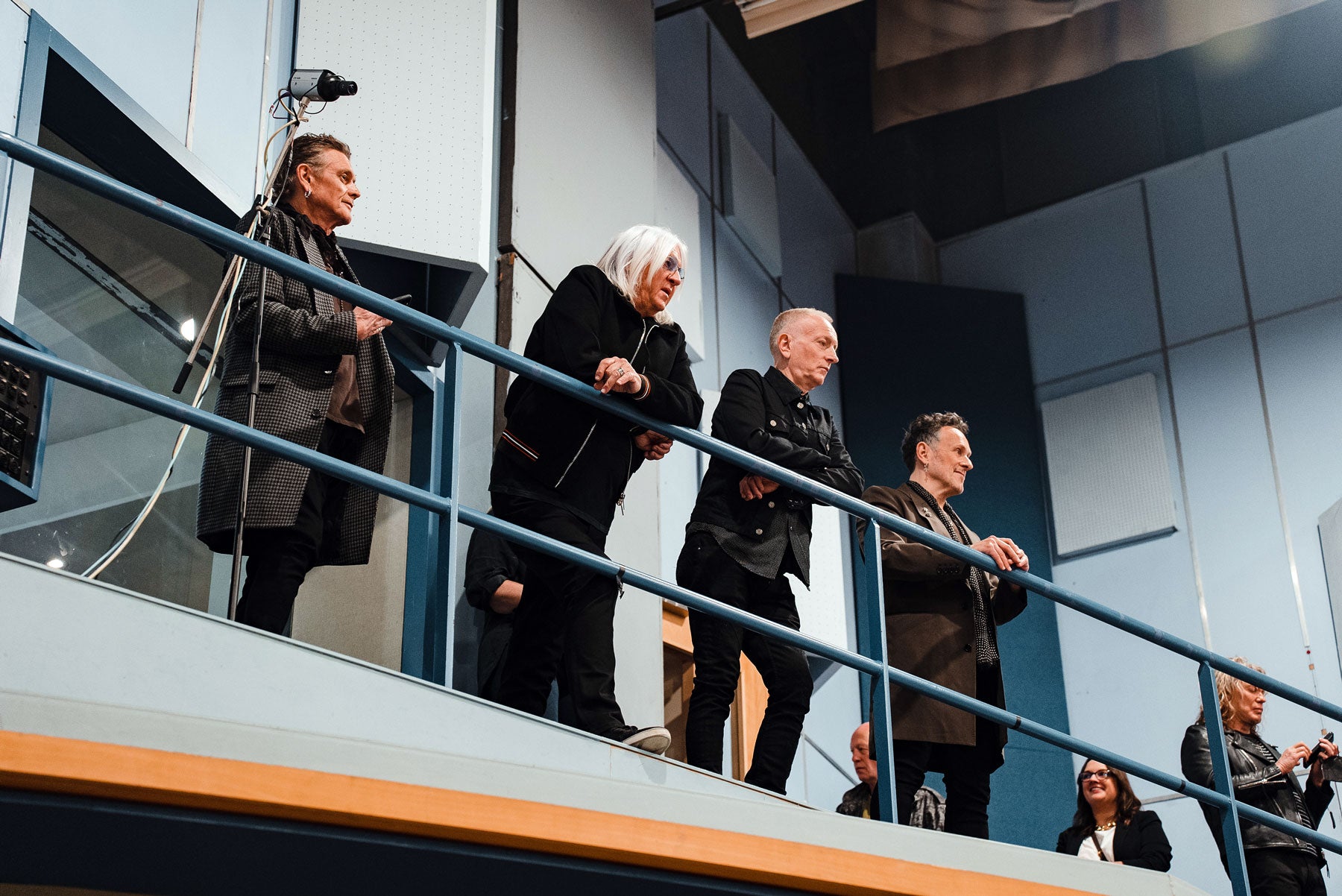 The band talks inside Abbey Road's Studio 2, March 2022. Photo: Ryan Sebastyan. From the Collection of Def Leppard.