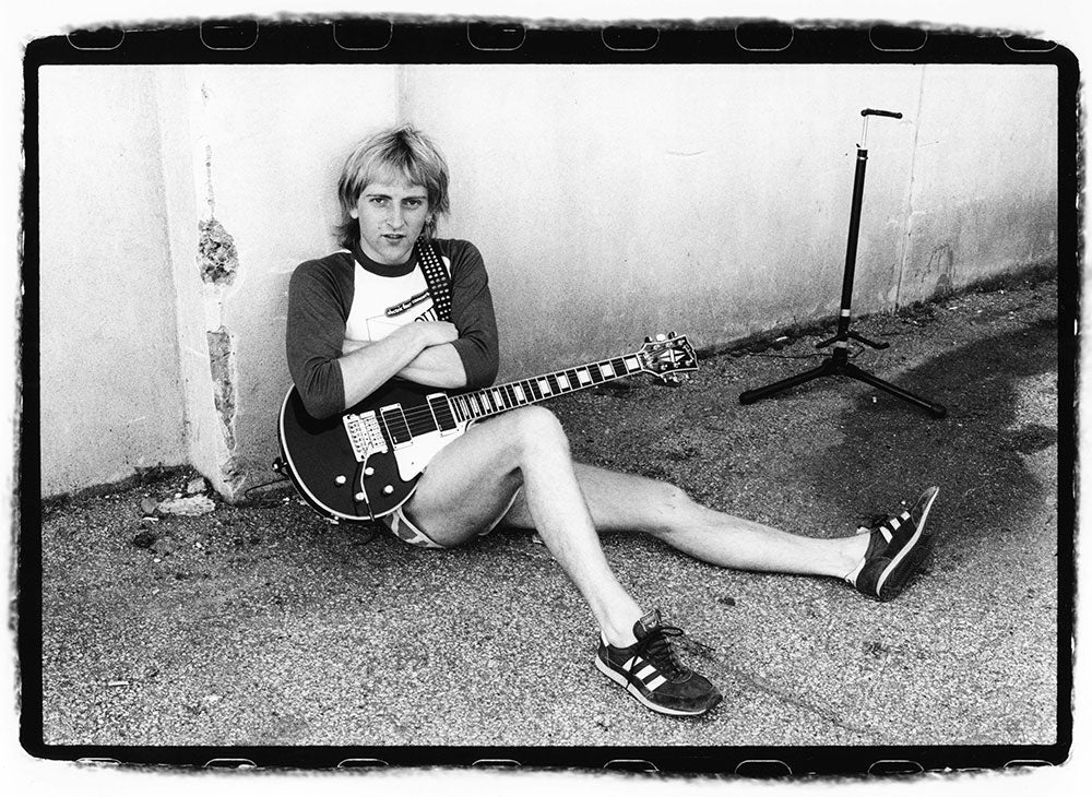 Viv laying it all out there, playing on the Adrenalize stage floor, 1992. Photo: Ross Halfin. From the Collection of Def Leppard.