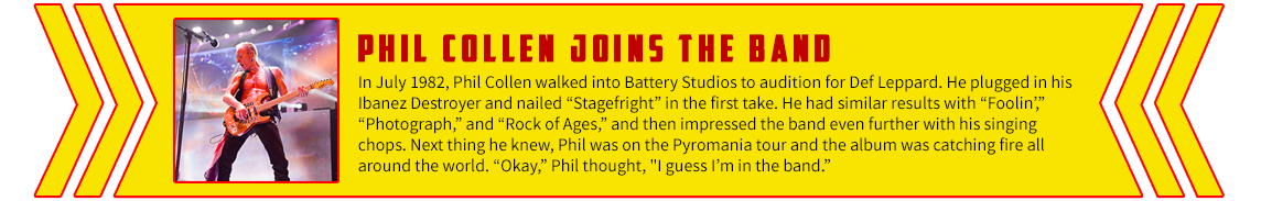 PolyGram Records promotional photo in support of Pyromania, circa 1982. This marks one of Phil's first official photo shoots with the band. From the Collection of Joe Elliott.