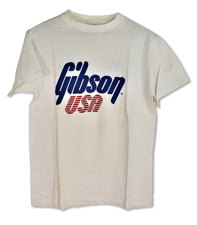 Steve Clark's personal Gibson Musikmesse t-shirt. Gibson logo printed on the front, "Musik Messe Frankfurt 7-11.2.1987" printed on the back. Musikmesse is Europe's biggest fair for the music industry, music instruments and music education, occurring every February since 1980. Courtesy of the Lorelei Shellist Private Collection.