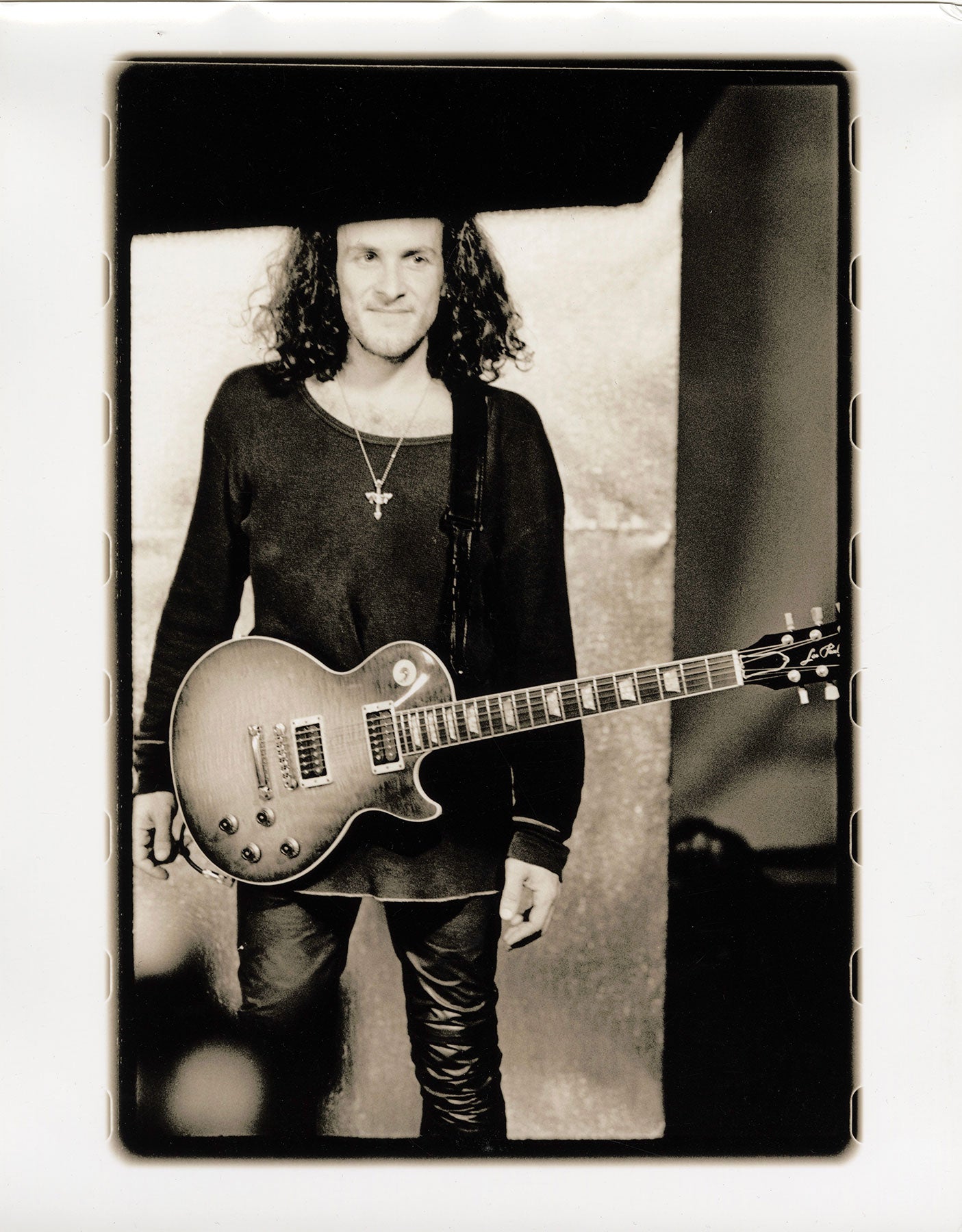 Viv holds a Gibson Les Paul in this promotional photo for X, 2002. Photo: Clive Arrowsmith. From the Collection of Def Leppard.
