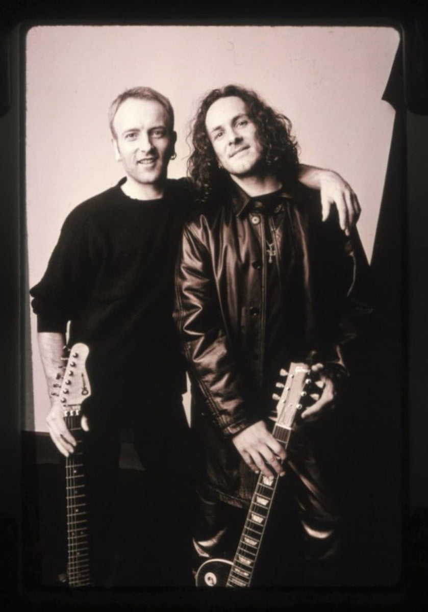 Viv and Phil pose for a Euphoria Tour promo photo, circa 1999. In a review of the tour, the Saint Louis Post-Dispatch declared, "Guitarists Phil Collen and Vivian Campbell both offered up fiery solos, and drummer Rick Allen provided a rock-solid bottom that gives Def Leppard one of the only danceable sounds in metal." Photo: Danny Clinch. From the Collection of Def Leppard.