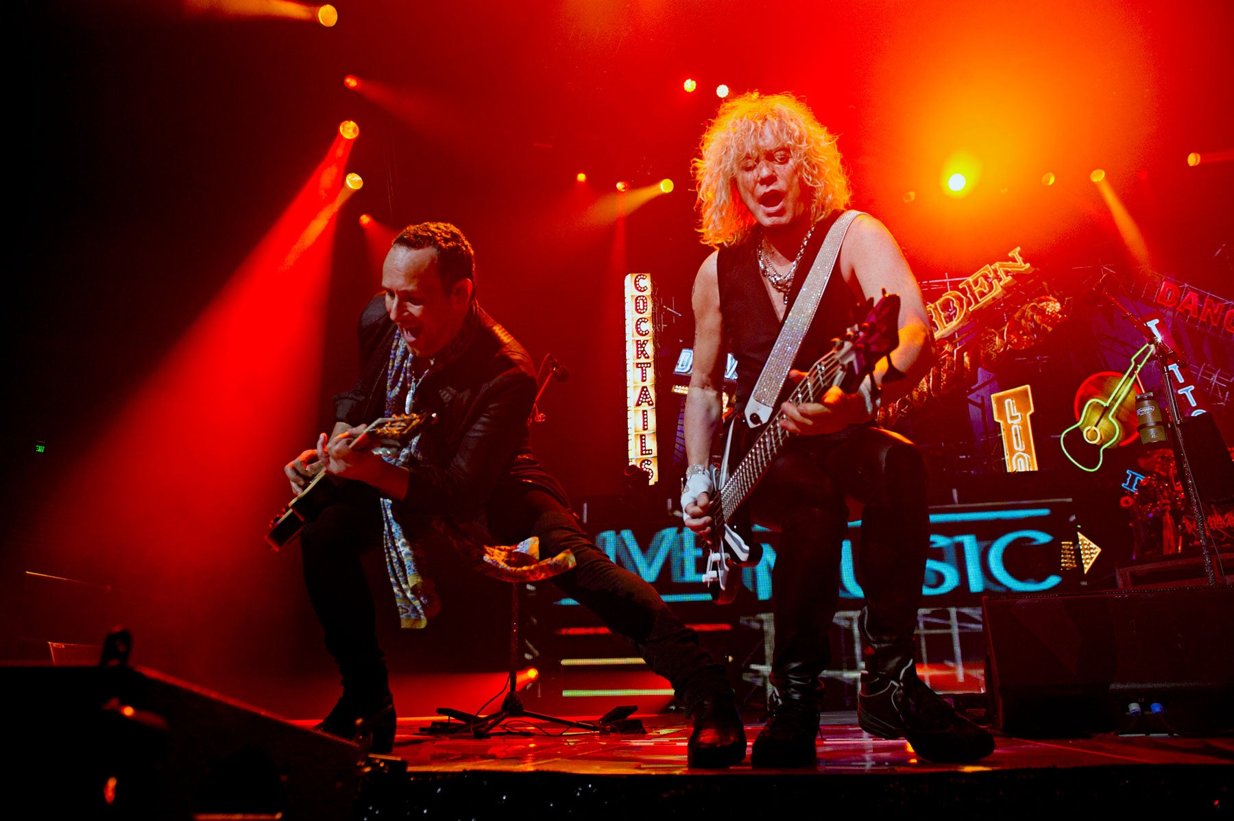 Viv and Sav tear up the Las Vegas Strip during the Def Leppard residency at Zappos Theatre at Planet Hollywood Resort and Casino, 2019. Photo: Ross Halfin. From the Collection of Def Leppard.