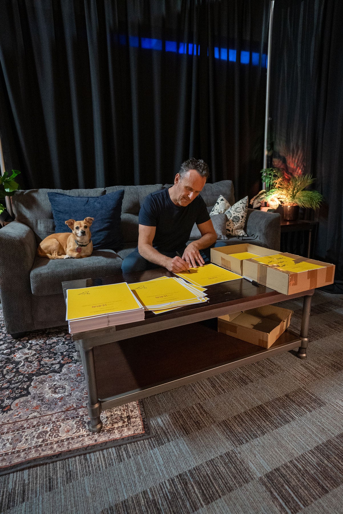 Viv and Stu take a moment out of their busy schedules to sign copies of Definitely: The Official Story of Def Leppard. Photo: Ryan Sebastyan. From the Collection of Def Leppard.