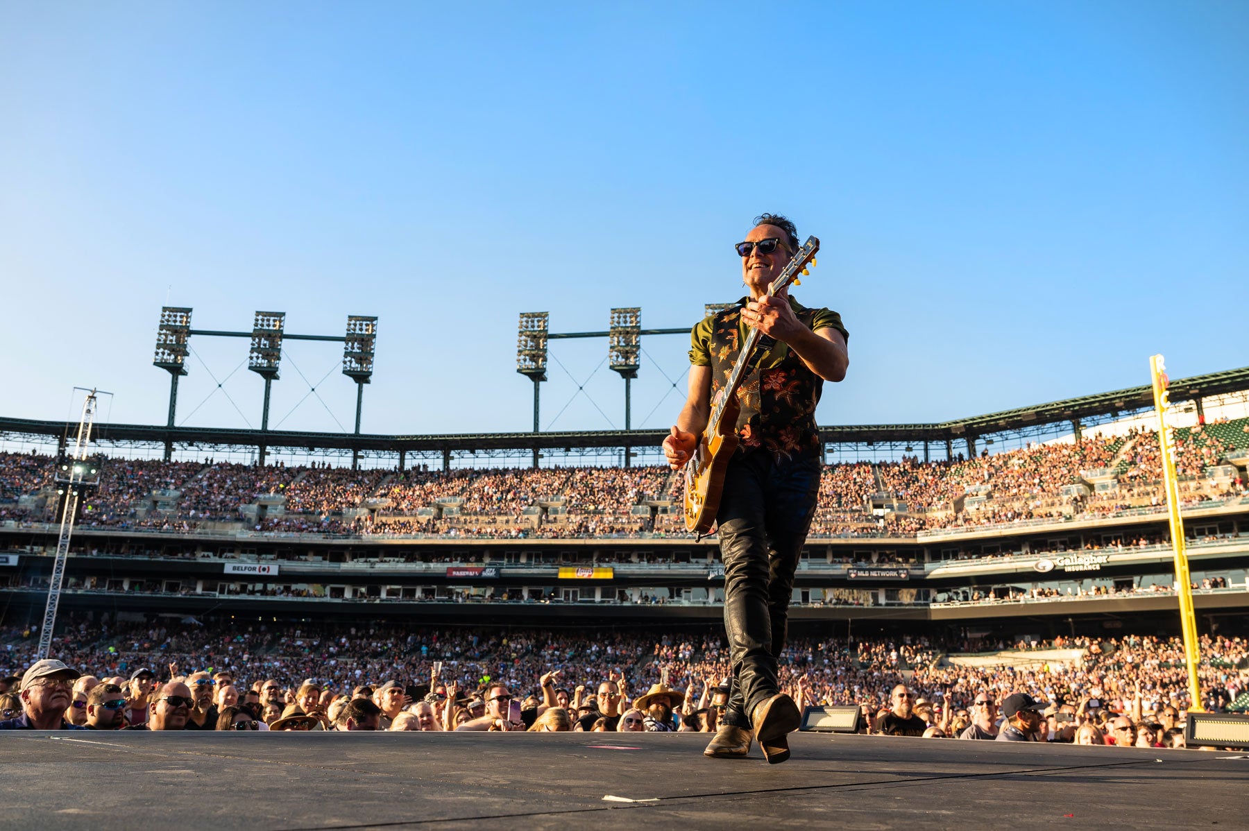 Viv enjoys a tuneful stroll across the stage of Detroit's Comerica Park Stadium, 10 July 2022. Photo: Kevin Nixon. From the Collection of Def Leppard.